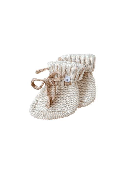 Knitted booties to compliment our Biscotti Fleck, Suns and Toffee Winter Collections. Designed to be a timeless keepsake to remember just how teeny, tiny they were. An heirloom piece to pass down to other siblings or a special something to pop in their keepsake box. Functional drawstring to ensure booties don't fall off when worn.